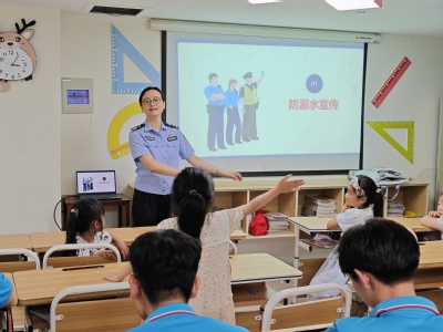 珍爱生命,远离水域。防溺水安全教育一直是我们需要加强的重点领域。暑期已至,炎炎夏日,正是溺水事故的高发期,为了保障孩子们的暑假安全,提高他们的防溺水意识,倪警官和孩子们展开关于防溺水知识的讨论,提问孩子们相关的安全问题。除此之外,她还借助简单易懂的小视频向孩子们讲解了“离岸流”和“干性溺水”的知识,并建议孩子们通过学习游泳提高自救和互救的能力。让孩子们在轻松的氛围中学到更多安全知识。