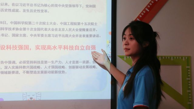 78日下午,合肥学院教育学院“七彩童年,‘育’你相伴”三下乡社会实践团队于合肥滨湖和园社区开展了一节课程。本次课程由志愿者彭启月担任主讲教师,志愿者侯鑫宇担任助教,主要内容是让孩子们感受中国科技的神奇。