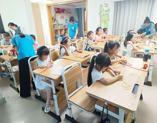 纸上得来终觉浅,绝知此事要躬行。在老师们的指导下,孩子们聚精会神地边听边制作,生怕错过重要的细节。遇到比较难懂的地方,王老师也会不厌其烦地多讲几遍,直到孩子们都弄懂为止。由于制作中国结的过程存在一定的难度并且需要使用到定位针等尖锐的工具,实践团队成员便采用了“一对三”的教学模式,进行分组教学。 创新是一个民族的灵魂,是一个国家兴旺发达的不竭动力。在编织完中国结后,许多孩子们给中国结系上装饰物,使得自己的中国结更具观赏性和时尚性,也赋予了中国结独特的寓意。 以绳为记,寄你所愿;以绳为念,结你所愿。一跟小小的红线被赋予了生命之源,历经千年,生生不息,它的线虽细,却用了无数的心思和精力,每一个绳结都寓意着一份祝福和美好,彰显着中华民族特有的文化精髓,体现着中国文化自信。文化待传承,从古国清才子贵;滇人须发愤,至今联圣后人尊,相信孩子们在本节课后也能在实践中将中华优秀传统文化发扬光大!(撰稿人:周琴,审稿人:张弦乐)
