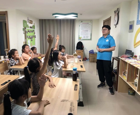 7月5日,合肥学院教育学院“七彩童年,‘育’你相伴”三下乡团队来到滨湖和园社区开展社会实践活动,王欣悦和高凡两位老师为孩子们带来了“中国结,中国情”课程。课程的主要目的是让孩子们在学会制作中国结的同时,感受民间技艺的独特魅力,领悟中国结的丰富内涵,传承优秀传统文化。 中国结是一种中国特有的手工编织工艺品,它以其独特的造型、丰富的内涵充分体现出中国人民的智慧和和深厚的文化底蕴。因此在课程开始之前,王老师首先提出了一个与之相关的问题:“春节这天,大家家中都会怎么布置”,孩子们积极举手回答,也由此导入了本节课的内容——学习制作中国结。