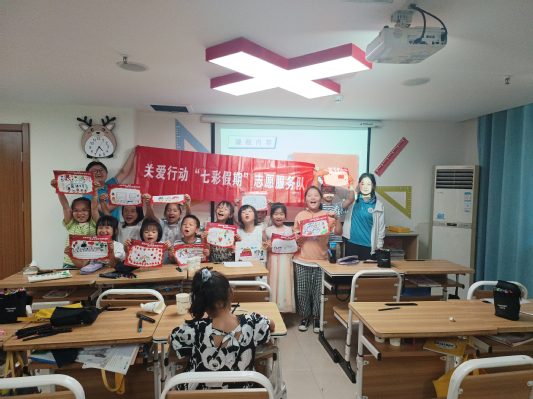 75日下午,合肥学院教育学院“七彩童年,‘育’你相伴”三下乡社会实践团队于合肥滨湖和园社区开展了一次意趣横生的读书分享会,志愿者张晓洁和王欣悦为孩子们带来一堂有关“民族之花处处开”的生动课程。