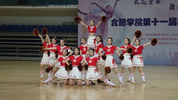 为促进学生全面发展,丰富校园体育文化生活,发扬大学生阳光体育的精神,发现、培育校园啦啦队新星,推动全院啦啦操运动的开展,公共体艺部于5月27日在二期体育馆举办合肥学院第十一届大学生啦啦操大赛。