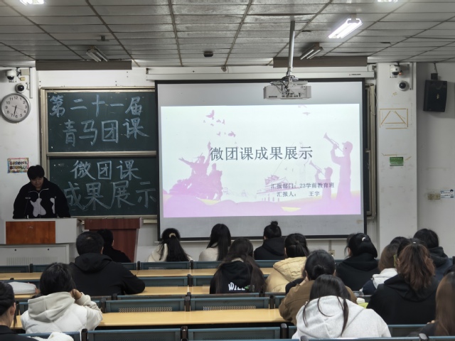 11月13日晚6:30分,教育学院于3栋101教室举办了第二十一届青马团课的微团课展示。本次活动由组织部委员徐锦瑶主持,评委由主席团成员周天艺、芮鹭洁,团委学生兼职副书记屠厚辉、李艾锦担任,各学员以班级或部门为单位参加,各小组的12名代表学员分别上台展示并交流,用百年奋斗历程,筑牢青年思想根基。