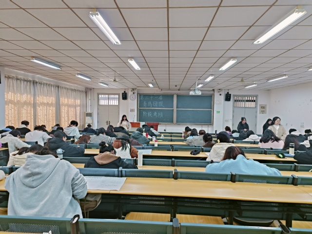 11月15日中午12点15分,教育学院在3栋101教室举行第二十一届青马团课结业考试。团委学生会主席周天艺、芮鹭洁,团委学生兼职副书记李艾锦,组织部部长朱思宇和副部长周琴担任监考人员,28名学员参加本次考试。