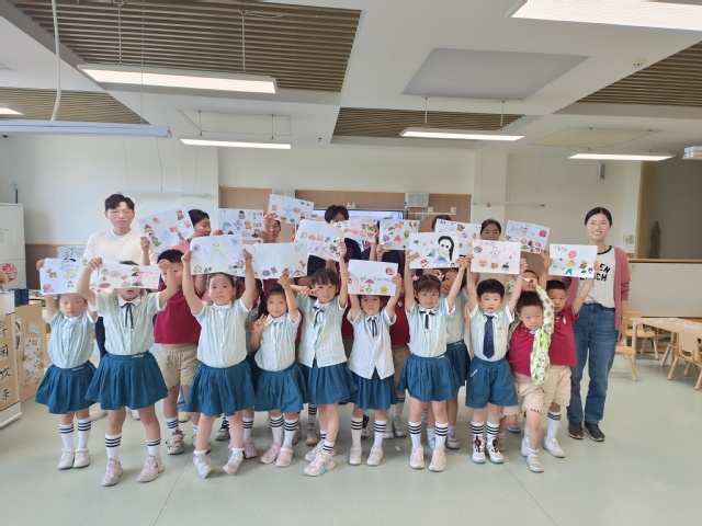 在分享总结环节,3组孩子主动勇敢地走上台前分享他们的作品,每个作品都凝聚着孩子们的友谊和创意。最后,全部孩子拿着自己的作品拍照留念,记录下这难忘的时刻。