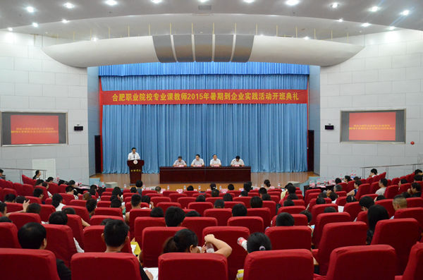 8月6日,合肥职业院校专业课教师2015年暑期到企业实践活动开班典礼在我校图书馆学术报告厅成功召开,合肥市教育局副局长唐文水,合肥学院校长张文兵,校督导郑永红,合肥市教育局职成处、财审处有关负责人出席开班典礼。西伟德宝业快可美(合肥)有限公司总经理代启宏、副总经理吴守祥以及格力电器、合肥美菱股份有限公司、海尔集团合肥园区等10家企业负责人以及合肥市22所职业院校180名教师参会,开班典礼由郑永红主持。