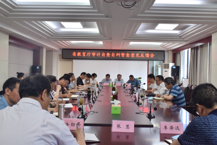 意见反馈会上,督查组组长段小明和副组长曹玉建充分肯定了我校自查自纠工作取得的成绩,但同时也指出了我校存在需要改进的9个方面问题以及迎接审计厅审计需要关注的风险点。要求我校继续深化自查自纠工作,做到问题早发现早整改,建章立制,规范管理,不断提升管理水平,推动学校高质量发展。