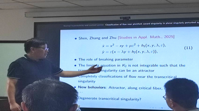 三位教授结合理论推导与实例分析,细致讲解研究成果与方法。沈建和以丰富的案例和严谨的推导,系统阐释接触点分叉奇异扰动的核心问题,为学员搭建起基础理论框架;