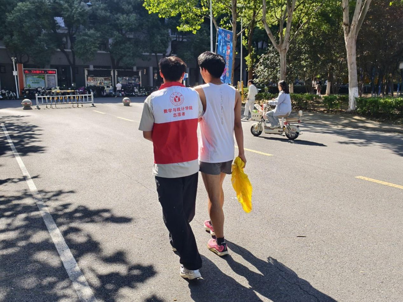 赛场下,数学与统计学院志愿者们也成了一道道风景。竞赛组志愿者精准辅助裁判,确保了每一项赛事的有序进行;场地组志愿者奔波于各个赛场,维护设施,清理跑道;后勤保障组志愿者及时为运动员和工作人员送去饮水与物资。他们各司其职,构成了一个高效运转的协作网络,将“奉献、友爱、互助、进步”的志愿精神诠释得淋漓尽致。