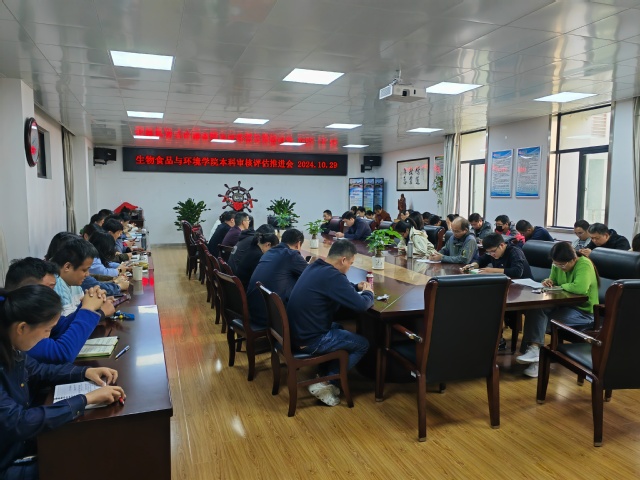 为更加有效地推进本科教育教学审核评估工作的深入进行,高质量地迎接专家线上线下的考察评估任务,1029日下午,生物食品与环境学院组织开展了2024年度秋季学期第三次全院教职工大会,学院党政领导班子及全体教师参会。会议由学院副院长(主持工作)阮班锋主持。