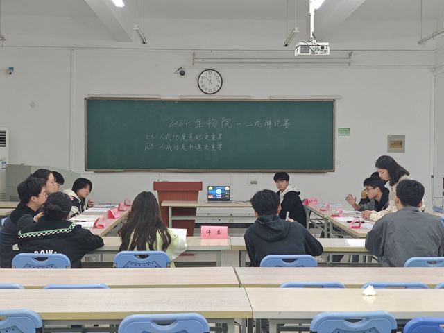 10月28号晚上18:30,生物食品与环境学院在生化楼207教室内开展了129辩论赛。此次决赛汇聚了在初赛、复赛中脱颖而出的两支优秀辩论队伍,他们分别是“你们辩的都不队”和“大张伟队”,双方围绕“人要成功是基础更重要还是机遇更重要”辩题展开了一场精彩绝伦的思想交锋。
