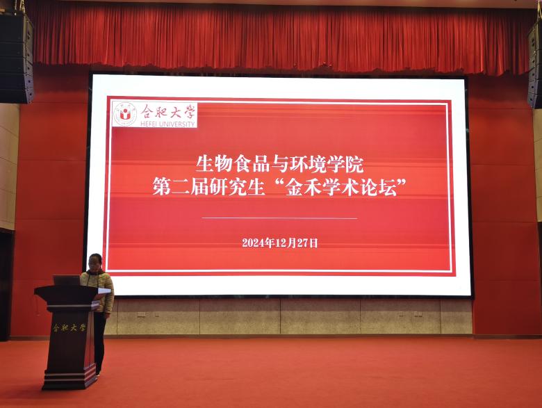 为进一步加强研究生学风建设,营造浓厚的学术研究氛围,12月27日,生物食品与环境学院举办第二届研究生“金禾学术论坛”。合肥工业大学王军辉、安徽建筑大学唐建设、安徽中医药大学黄鹏受邀担任评委。研究生处处长葛春梅、生物食品与环境学院副院长(主持工作)阮班锋、副院长笪春年以及生物食品与环境学院全体研究生参加活动。论坛由研究生辅导员葛远飞主持。