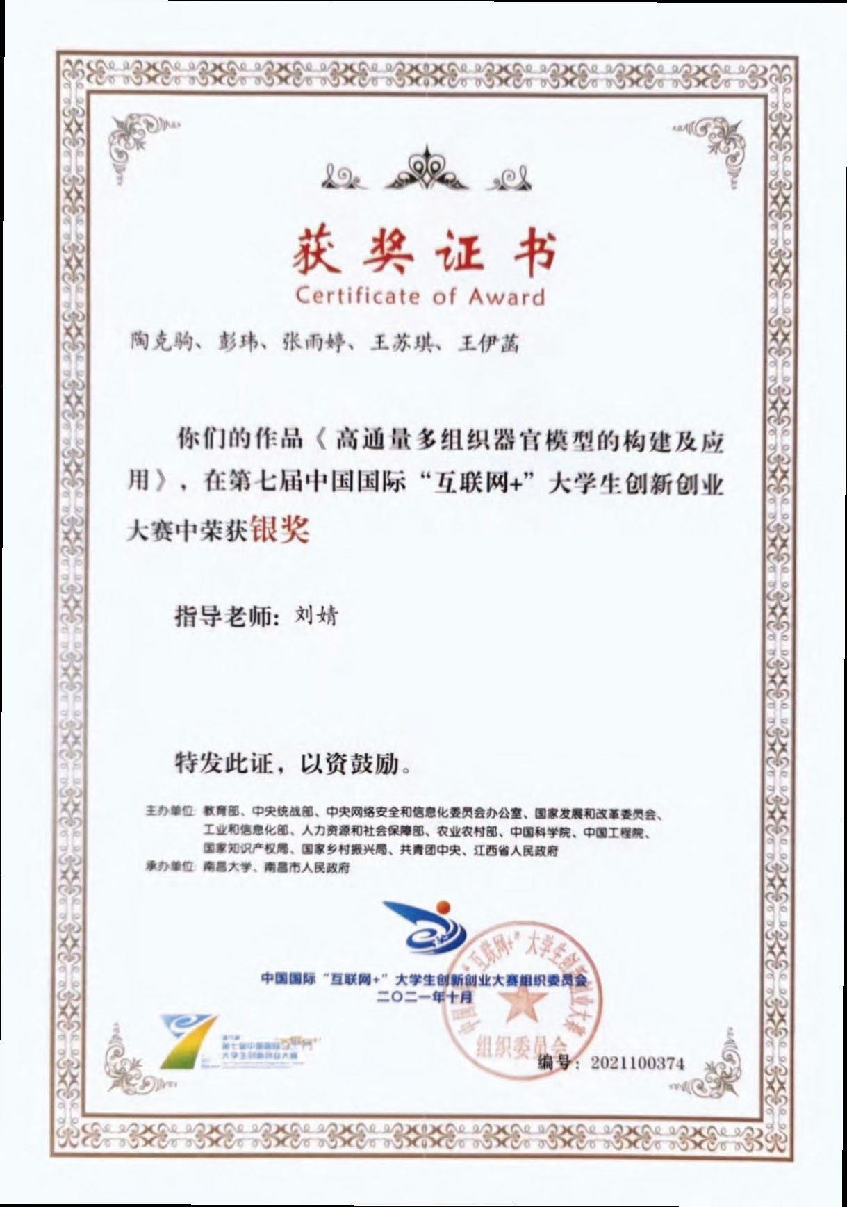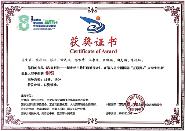 代表性获奖证书: