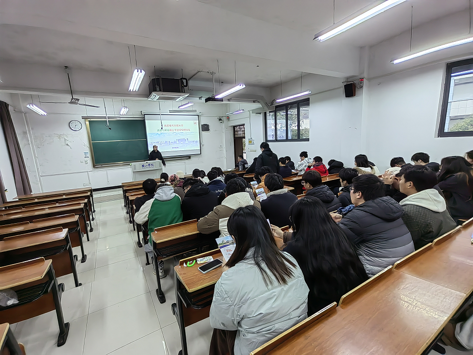 在黄山学院,生命与环境科学学院环境工程专业主任马海明老师早早就安排好了宣讲场所,2021、2022环境工程专业本科生静候宣讲老师的到来;宣讲过程中,叶老师首先就我院资源与环境专业学位研究生的招生计划、发展历程、培养特色及培养条件及奖助体系、未来就业等方面向同学们做了介绍;之后张金流老师就2025年研究生招生调剂工作及我院研究生招生培养政策方面向同学们做了介绍并详细回答了同学们的提问。