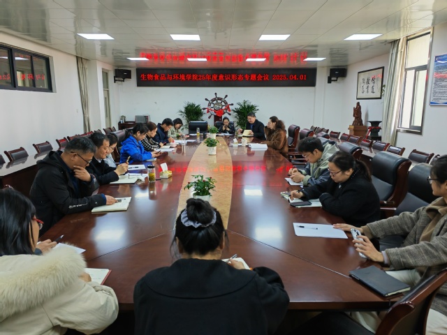 为进一步加强党对意识形态工作的全方位领导,深入落实学院党委领导班子和党员干部的意识形态工作责任,2025年4月1日,生物食品与环境学院党委召开意识形态工作专题会议。全体院领导、党委委员、各支部书记、科级干部参加会议,会议由学院党委副书记晋松主持。