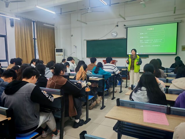 活动伊始戴燕通过播企业宣传片,向同学们全方位展示了公司的业务范围、企业文化以及市场影响力。随后,戴燕详细介绍了公司的招聘计划,涵盖多个专业领域,包括食品科学与工程等相关专业,为不同专业背景的同学提供了丰富的就业选择。同时,针对每个岗位的职责、要求以及职业发展路径,都进行了讲解,让同学们清晰地了解到入职后的工作内容和未来的晋升空间。在福利待遇方面,戴燕表示公司提供优厚的薪资待遇、五险一金福利,以及丰富的员工关怀活动。此外,公司还重视人才培养,拥有完善的培训体系,为新入职员工提供系统的岗前培训和在职进修机会,助力员工不断提升专业技能和综合素质互动问答环节将宣讲会推向高潮同学们就自己关心的问题,如未来发展,工作时间积极提问。戴燕一一作答,与同学们展开了热烈的交流互动,现场气氛十分活跃。