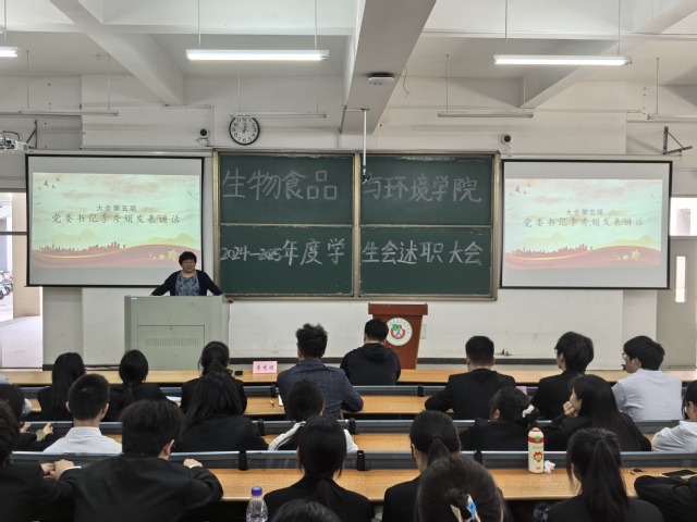 20254231230,生物食品环境学院2024-2025年度学生会述职大会于生化楼一阶梯教室顺利召开,生物食品与环境学院党委书记李秀娟,院团委负责人杨林以及全体学生会成员参与