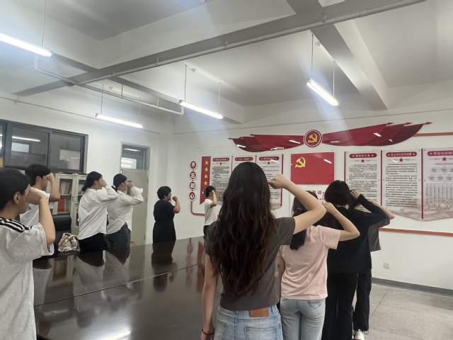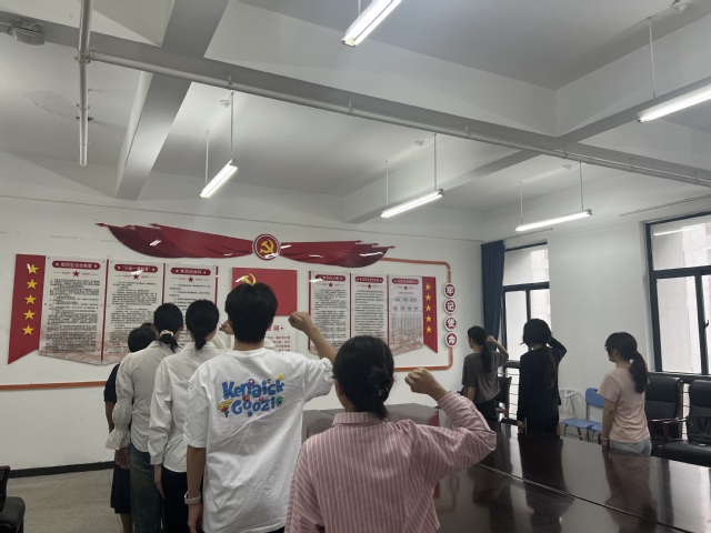 仪式在激昂的《国际歌》声中拉开帷幕。全体人员神情肃穆,仿佛跟着歌声回到了那个波澜壮阔的革命年代,深刻感受到了革命先辈们为了理想信念而不懈奋斗的精神力量。接着赵暮雨宣读了新党员名单,并向新党员们表示祝贺。她强调,加入中国共产党不仅是一种荣誉,更是一份沉甸甸的责任。新党员们要以更高的标准严格要求自己,在学习、工作和生活中发挥先锋模范作用。