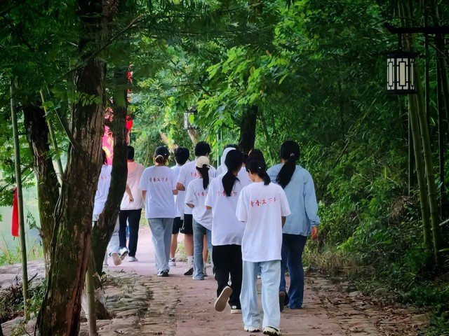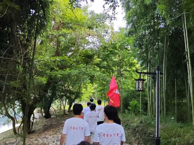 团队抵达大演乡后,短暂的休整,队员们便开始了第一天的实地考察。他们沿着乡村小道,边走边看,边问边记,详细了解当地的自然环境、农业生产、村民生活等情况。参观文化景点,感受乡村魅力在调研间隙,团队成员们还参观了当地的文化景点。他们走进乡间小路,走进一片茂密的竹林,感受大自然的清新与宁静。在一处古色古香的凉亭旁,队员们驻足休息,欣赏周围的美景,拍照留念,总结交流,明确调研方向,讨论了调研中发现的问题和下一步的调研方向。我们将重点围绕农业产业发展、生态环境保护、村民生活改善等方面进行深入调研,为乡村振兴贡献我们的智慧和力量。最后合影留念,记录青春足迹,大家手持生物食品与环境学院的院旗,面带微笑,留下了珍贵的青春足迹。