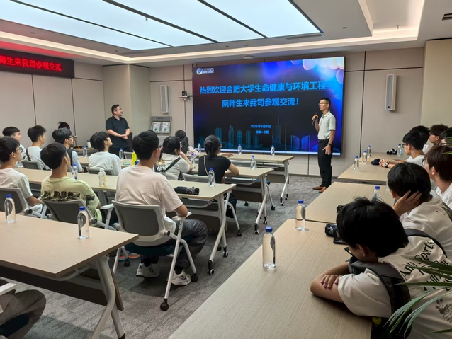 环境工程一班的同学们来到了安徽中环环保科技股份有限公司,在中环环保总部,通过生动的讲解和丰富的展示内容,同学们全面了解了中环环保的发展历程、业务布局和技术创新成果。从污水处理到固废处置,从环境治理到资源化利用,企业在水环境治理领域的全产业链布局让同学们对行业有了更宏观的认识。
