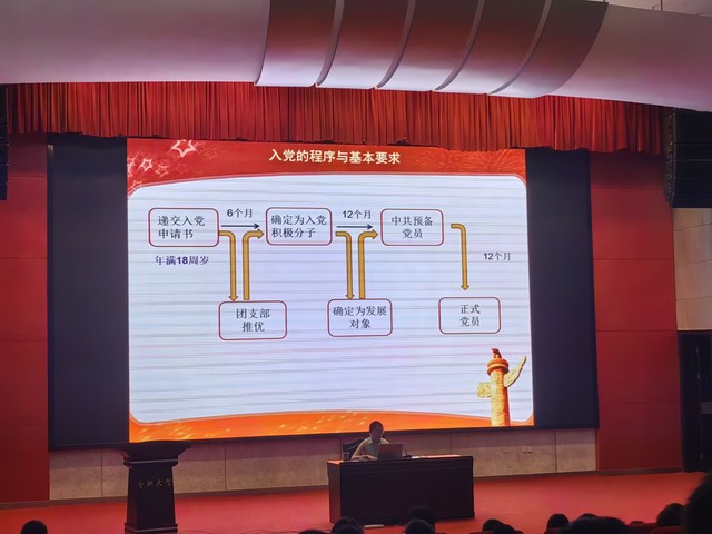 本次讲座围绕“团员发展”“团员推优入党”“入党程序与基本要求”等内容展开。杨林先是介绍了团员发展的相关要点,详细说明了团员推优入党的条件、流程,勉励各位同学全方位提升自己,积极递交入团申请书,成为一名光荣的共青团员。