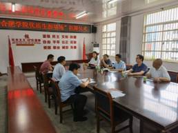 上午9点半,宣传小组首先来到六安二中,陈俊副院长向六安二中的校长关世宏、副校长尤奇志、教务处主任吴斌和教务处副主任闫俊详细介绍了我院2021年招生计划以及我院的专业特色、师资队伍、课程设置以及就业情况等。关世宏校长表示六安二中作为合肥学院的优质生源基地,一定会将更多优秀学子输送到合肥学院深造。
