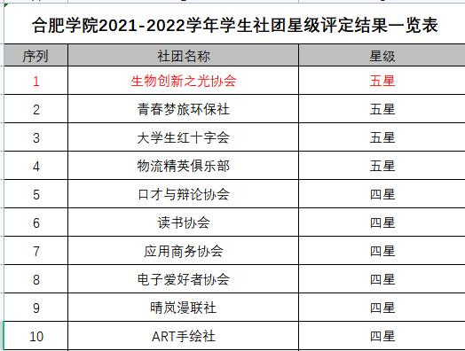 为进一步规范对学生社团的管理,促进学生社团的健康发展,促进学生社团形成“创先争优”的意识,营造良好的学生社团发展氛围,依据《合肥学院学生社团建设管理实施细则》,经学生社团建设管理评议委员会研究,共青团合肥学院委员会决定开展合肥学院2021-2022学年学生社团年审工作,即星级评定及续建。