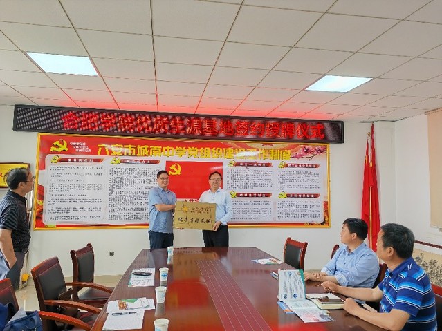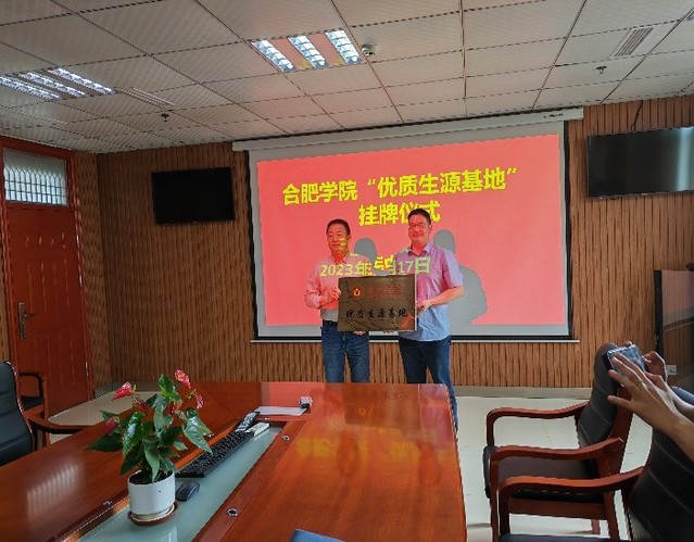 在六安市城南中学,阮班锋院长首先就我院办学特色、专业设置、就业前景和2023年招生计划等情况向城南中学校长刘传宝及领导班子进行了介绍。随后,合肥学院和城南中学举行了“优质生源基地”授牌仪式。刘传宝校长表示将通过优质生源基地的平台建设进一步增强两校之间的沟通、交流与合作。