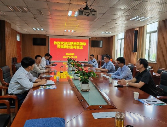 在毛坦厂中学东城校区,阮班锋院长首先向校长张德建及领导班子详细介绍了我院2023年招生计划以及我院的历史沿革、学科建设、专业特色等情况。随后,张德建校长介绍了东城校区的发展历史、生源质量和高考升学率等基本情况,希望能和合肥学院开展教育教学合作,借助高校教育资源和平台优势,提升学生综合素质,为合肥学院输送更多的优秀学子。