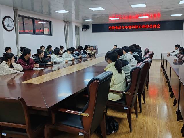 生物食品与环境学院例会的顺利开展,为进一步宣传心理知识、引导健康人生,提高学生的心理素质,营造良好的校园心理文化氛围做出了重要贡献。通过这次会议,学院为学生的心理健康搭建了更加坚实的平台,为构建支持性、包容性的校园环境迈出了坚实的步伐。