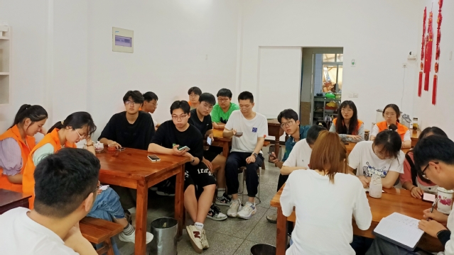 到达目的地后,经过简单的休整,“乡”遇青春,“演”动绿夏调研团成功召开了第一次全体会议。会议主要讨论了调研小组的走访群体和调研内容,并确定了校园小组的具体活动形式和宣传小组的主要任务,细致安排了团队成员的具体任务。