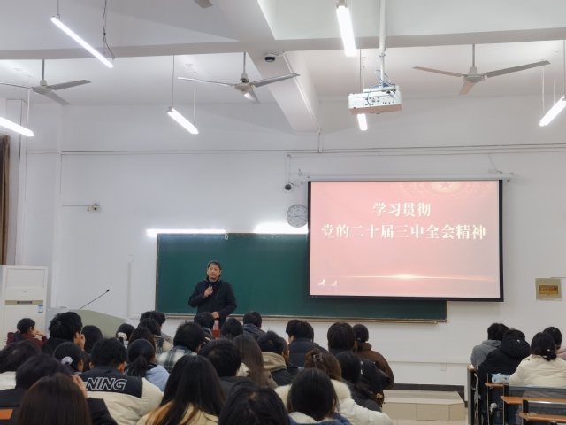 1224日下午,校党委委员、副校长白义香在37103教室,以“学习贯彻党的二十届三中全会精神”为题,为2024级产品设计专业和建筑学专业本科生讲授了一堂精彩的思政课,受到了同学们的热烈欢迎。