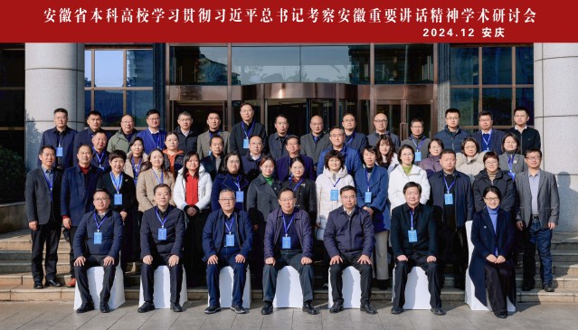 1227日至28日,由安徽省高等学校思想政治教育研究会主办,安徽省高等学校思想政治教育研究会思政工作队伍建设分会和安庆师范大学共同承办的安徽省本科高校学习贯彻习近平总书记考察安徽重要讲话精神学术研讨会在安庆市举行。来自省内40所本科高校的50余位专家学者参加会议,我院直属党支部书记、副院长苏冰受邀参会并作大会交流发言。