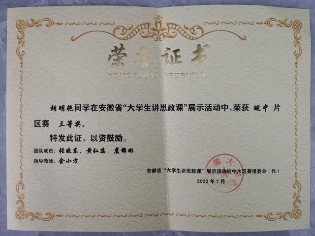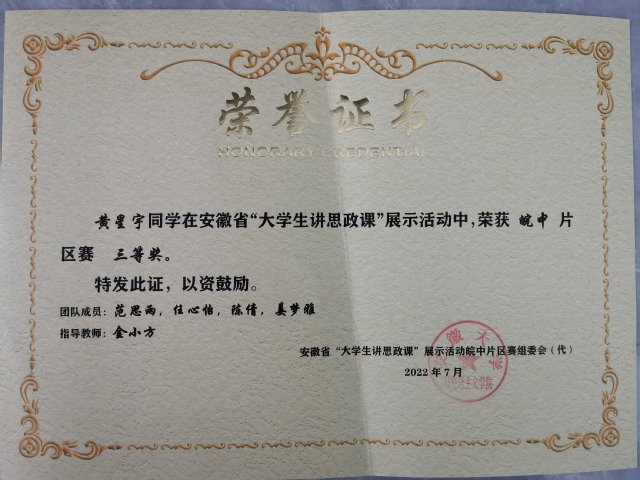我校两名同学获得2022年安徽省大学生讲思政课皖中片区赛三等奖
