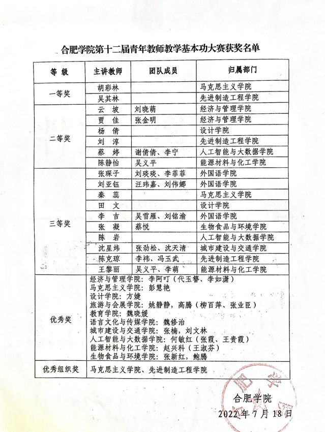为深化教育教学改革,加快青年教师培养锻炼特别是课堂教学能力和教学水平的提高,根据《关于举办第十二届青年教师教学基本功大赛的通知》等文件要求,学校组织了全校青年教师教学基本功大赛。经过激烈角逐,马克思主义学院青年教师胡彩林、秦蕊、彭慧艳分别在此次大赛中荣获一等奖、三等奖和优秀奖,马克思主义学院荣获优秀组织奖。