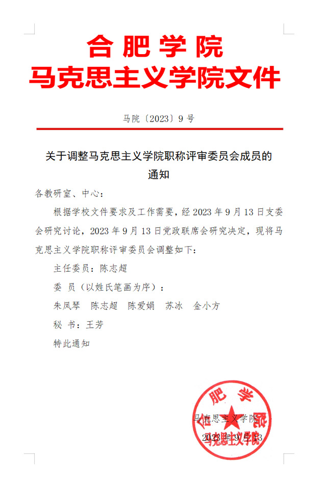 关于调整马克思主义学院职称评审委员会成员的通知.doc