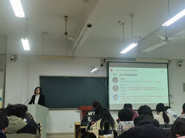 2023年12月28日下午,校长吴春梅以“以中国式现代化全面推进中华民族伟大复兴”为主题,为23级经济工程专业学生讲授了一堂生动的“形势与政策”课。