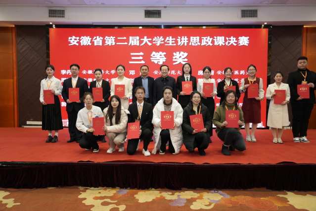 我校学子在安徽省第二届大学生讲思政课比赛决赛中取得佳绩2023年12月22日,安徽省第二届大学生讲思政课决赛落下帷幕。我校徐萌萌团队作品《新思想 新格局 新青年——建设具有强大凝聚力和引领力的社会主义意识形态》(指导教师:苏冰,李雯雯)荣获决赛三等奖。