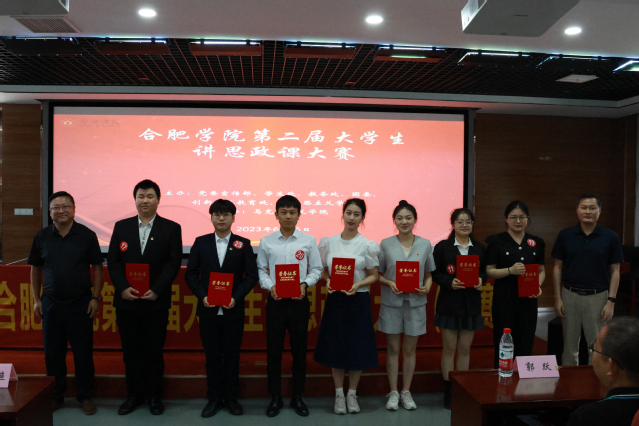 我校成功举办第二届大学生讲思政课大赛 为深入学习贯彻习近平总书记关于思政课建设的重要论述和党的二十大精神,推动学习贯彻习近平新时代中国特色社会主义思想主题教育走深走实,积极推进我校思政课改革创新,6月16日上午,我校第二届大学生讲思政课大赛(决赛)在一期六栋教学楼学术报告厅举行。合肥师范学院机关二党委书记陶有浩教授、安庆师范大学马克思主义学院副院长张俊生教授、安徽建筑大学马克思主义学院副院长刘晓君教授、安徽中医药大学马克思主义学院副院长郭跃教授和安徽艺术学院马克思主义学院副院长陈昀岚教授应邀担任评委。马克思主义学院院长陈志超、副院长苏冰,马克思主义学院全体教师、各参赛团队指导老师及学生团队代表现场观摩。 本次大赛由校党委宣传部、教务处、学生处、创新创业教育处、团委和马克思主义学院共同主办,马克思主义学院具体承办。大赛分为初赛和决赛,初赛形式为视频评选,决赛形式为现场授课展示。全校108组学生团队报名参赛,经过初赛评审,共有23组团队进入决赛。决赛现场,选手们围绕党的二十大报告中的关键词,以“乡村振兴”“中国式现代化”“坚持全面依法治国”“打赢网络意识形态斗争”“坚定文化自信”“绿水青山就是金山银山”“构建人类命运共同体”等为主题,讲述新时代的奋斗故事,展现新时代的伟大成就,尽显“强国有我”的担当,充分展示了新时代大学生昂扬的精神风貌和良好的理论素养。