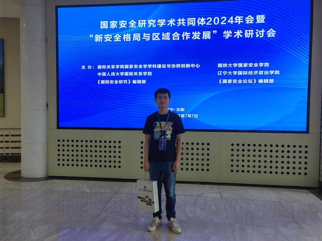 2024年7月4至7日,由国际关系学院、国防大学国家安全学院、中国人民大学国际关系学院和辽宁大学主办的国家安全研究学术共同体2024年会暨“新安全格局与区域合作发展”学术研讨会在辽宁沈阳举办。我院教师陶德强受邀参会,并在分论坛分享研究成果。
