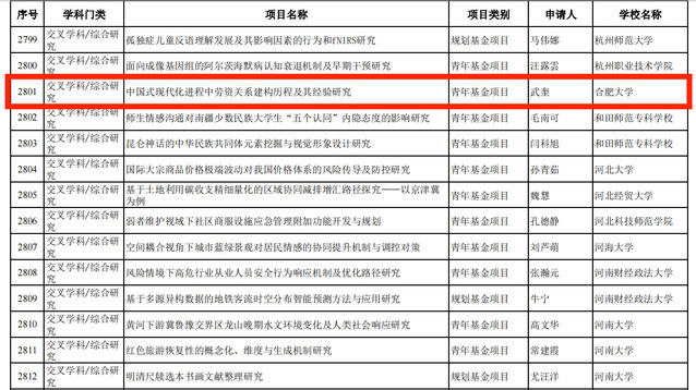2024年度教育部人文社会科学研究项目评审结果近期揭晓,我院教师武奎申报的课题《中国式现代化进程中劳资关系建构历程及其经验研究》获得青年基金项目资助。