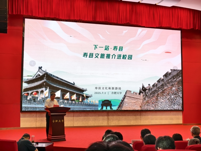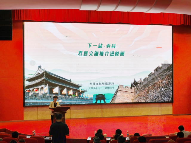 7月1日下午,“下一站·寿县”文旅推介进校园活动在我校图书馆报告厅A厅举行。我校副校长白义香,寿县人民政府副县长王素苗和寿县县委宣传部、文化和旅游局等相关部门领导出席。活动吸引了数百名师生热情参与。