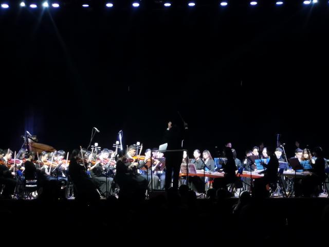 活动伊始,安徽大学青年艺术发展中心的两位成员引领我校艺术团代表进入会场。活动在一首慷慨激昂的交响乐《红旗颂》下正式拉开帷幕。此次音乐会由交响乐、独唱、合唱、二重奏等多个部分组成,包含古典和流行的元素,可谓精彩纷呈。交响乐《北京喜讯到边寨》、合唱《今天是你的生日》、《我和我的祖国》表达了对祖国深深的热爱和情感,交响乐《冰雪奇缘组曲》、二重奏《天气之子》以及钢琴四手联弹《龙猫》掀起了观众们对动漫电影美好的回忆。如果说《五月天组曲》和《那些年,我们一起追过的女孩》的精彩演绎掀起了此次音乐会的高潮,勾起了观众对青春的怀念,那么《卡农》、《小夜曲》等作品则为在场的观众们呈现了一种雅致庄重的古典美。交响乐团的乐手用娴熟的技艺演绎了古典作品的风韵。合唱《我喜欢》、《青春舞曲》也是十分地美妙动听。最后,音乐会在节奏欢快的《拉德斯基进行曲》中圆满落幕。