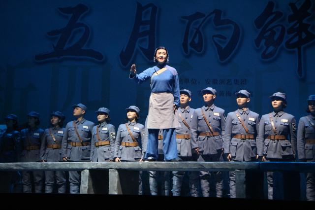 一声锣响,由安徽演艺集团创排出品的新编大型现代黄梅戏《五月的鲜花》拉开了表演的帷幕。运用传统乐器交响乐相结合的形式,汇聚众多国家级演员,采用精细讲究的舞台布置,才造就了《五月的鲜花》这一精品戏曲。全剧通过“约法三章”、“银圆风波”、“生死欠条”、“黎明托孤”、“江边话别”、“书院涅槃”等真实感人的戏剧场面,以顾重光、童华等一组新四军群像的塑造,让人们感受到那一代人身上的情感硬度和信仰纯度,昭示着中国共产党夺取全国胜利、走向辉煌的历史必然,兑换小分队谱写了一曲共产党人诚信如天的生命壮歌。《五月的鲜花》把握了时代审美特征,体贴人民群众的审美选择,绚丽的舞美、创新的形式紧紧吸引住在场师生们的注意,现场掌声如潮。