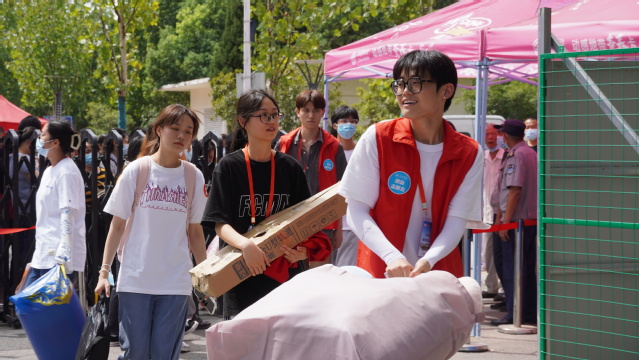 除此之外,志愿者们严格遵守学校的疫情防控要求,认真检查新生们的健康码和行程码,提醒新生戴好口罩并注意疫情防控。“一站式”服务面面俱到,在校门口、宿舍楼下、林荫小道都能看见志愿者忙碌的身影,他们守候在每一个地方,让新生们感受到学校的关心和温暖。