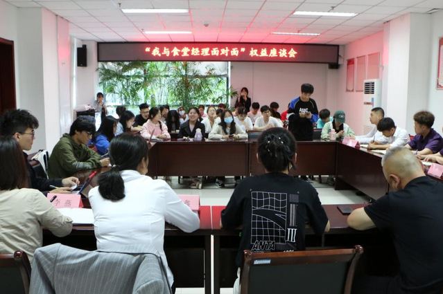 为贯彻全心全意为同学服务的宗旨,在食堂与学生之间形成双向交流与互动反馈机制,5月17日中午,校团委和后勤集团联合召开了“我与食堂经理面对面”权益座谈会,这是我校“我为同学办实事”系列活动之一。相关部门人员、食堂经理、校学生会工作人员和各学院学生代表参加会议。
