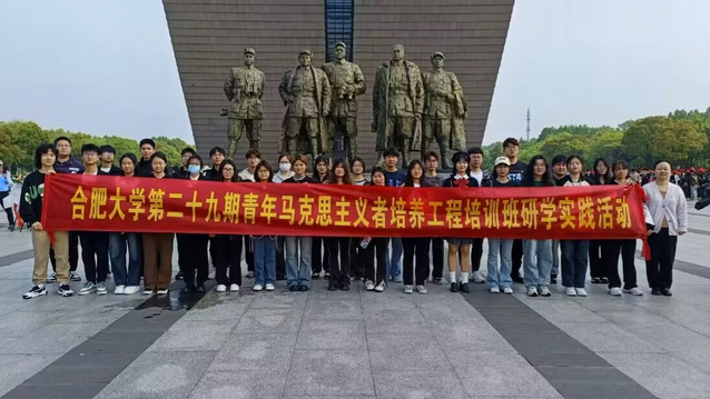 为加强红色教育,深化实践锻炼,引导青年运用马克思主义立场、观点、方法去观察和分析问题,我校青年马克思主义者培养工程第二十九期培训班在前期专题集中深入学习党史理论、基层共青团实务的基础上,近期组织学员分别前往大蜀山文化陵园、合肥市渡江战役纪念馆等地开展实地研学活动。