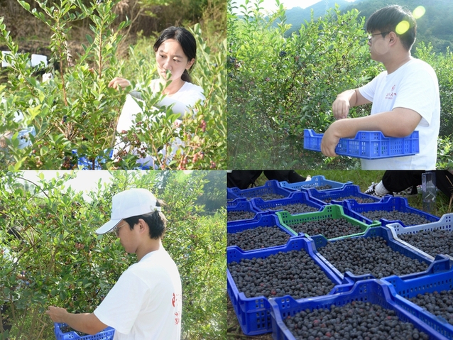 7月6日至7日,岳西正是烈日炎炎最暑天,实践队赴安庆市岳西县温泉镇龙井村蓝莓生产基地,经过蓝莓种植技术和采摘方法的培训后,队员们不畏酷暑,知行合一、躬身实践,帮助当地采摘蓝莓200余斤,获得了当地村委会的高度评价。