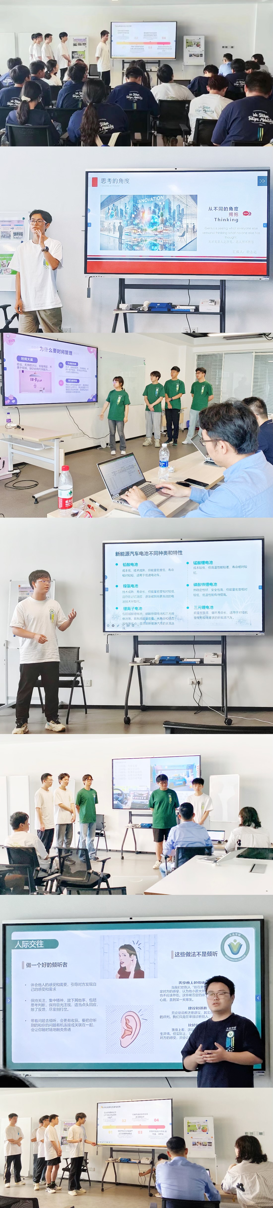 本学期,同学们学习了大众汽车企业文化大众汽车生产管理个人职业发展等大众企业课程,深入探索了大众集团企业文化及大众汽车生产管理各环节知识,学习了如何进行高效沟通和时间管理等软技能。同学们将这些知识整合,通过团队汇报展示的形式进行呈现分享。在本次汇报展示中,同学们从知识的接收者,变为知识的创造者和传播者。汇报主题涉及了从对创新型思维的理解到新能源汽车技术应用的广泛领域,每一个主题都体现了他们对知识广度和深度的独特理解。汇报不仅展示了学生个体的学习成就,更加凸显了团队合作的力量