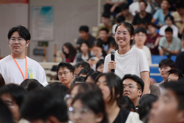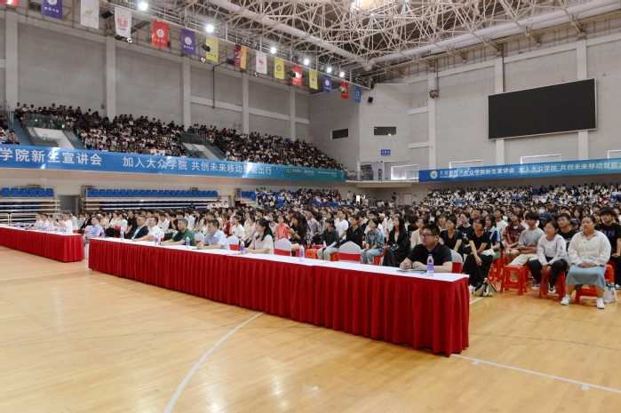 9月23日下午,大众学院在体育馆举办2024-2025学年“双元制”专业招生宣讲会,吸引了近三千名理工类专业新生到场聆听。